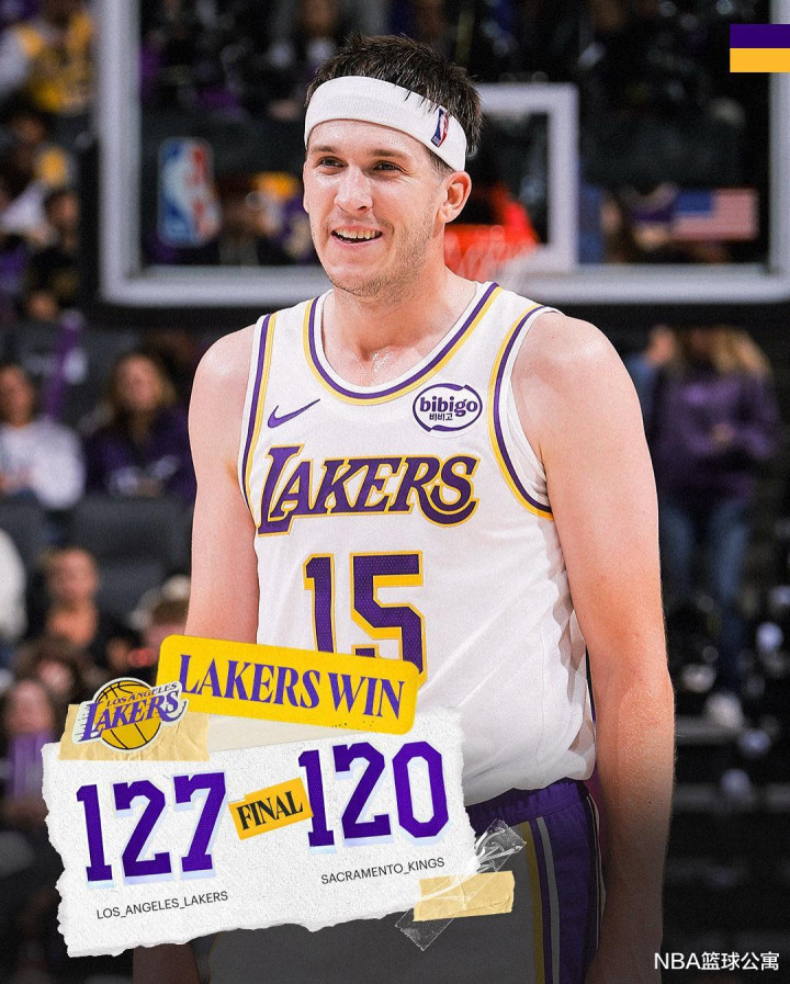 关键时刻,国王轰出了10比3的攻势,胜负悬念再起。关键时刻,艾顿拼下篮板球,里夫斯随后连续稳健罚球命中,帮助湖人就此收下了比赛。最终,紫金军团以127比120险胜对手。
