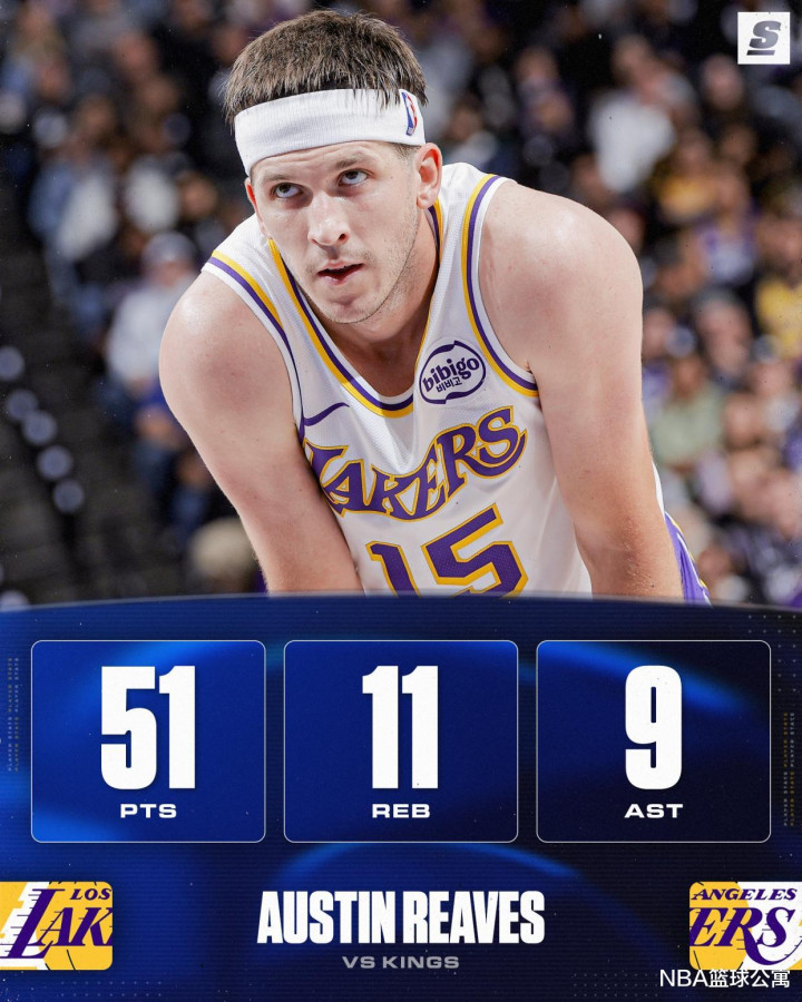 里夫斯51+11+9+6记3分创NBA历史第1神迹,还刷爆纪录,湖人险胜国王!威少18+6!
